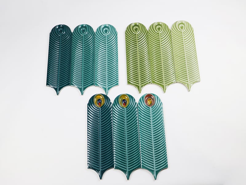 Peacock Feather và Feather Brick là 2 mẫu gạch thẻ hình lông vũ có hoạ tiết mô phỏng giống nhất với lông chim công. Gạch được làm hoàn toàn thủ công, đạt độ tinh xảo nhất định.