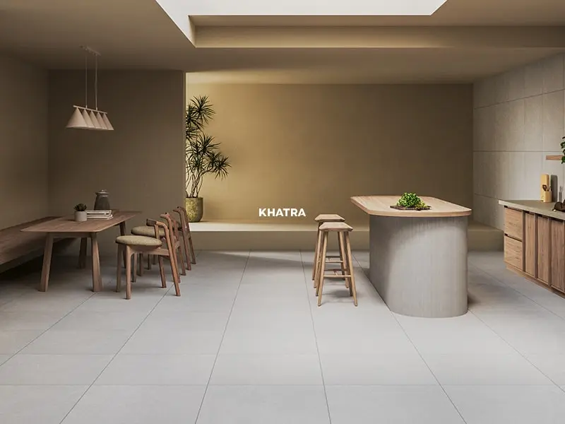 Thiết kế phòng bếp sử dụng gạch K6638 600×600 bề mặt matt tông màu Light Gray lát nền