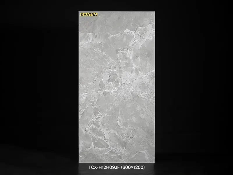 Hình chụp thực tế mẫu gạch lát nền TCX-H12H09JF (600×1200) với thiết kế gồm 4 map có hoạ tiết vân đá ngẫu nhiên màu xám