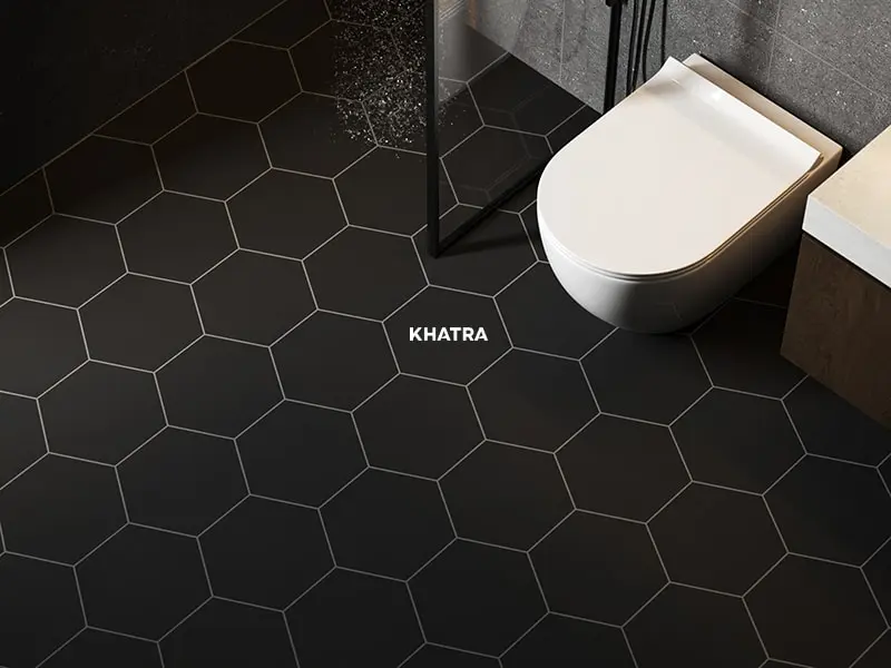 Phối gạch lục giác trắng đen xám lát nền nhà vệ sinh