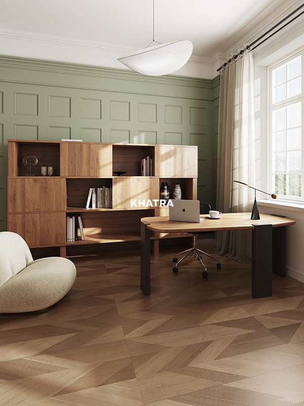 Gạch vân gỗ xương cá KF-612103GY được sử dụng lát nền phòng làm việc và bếp